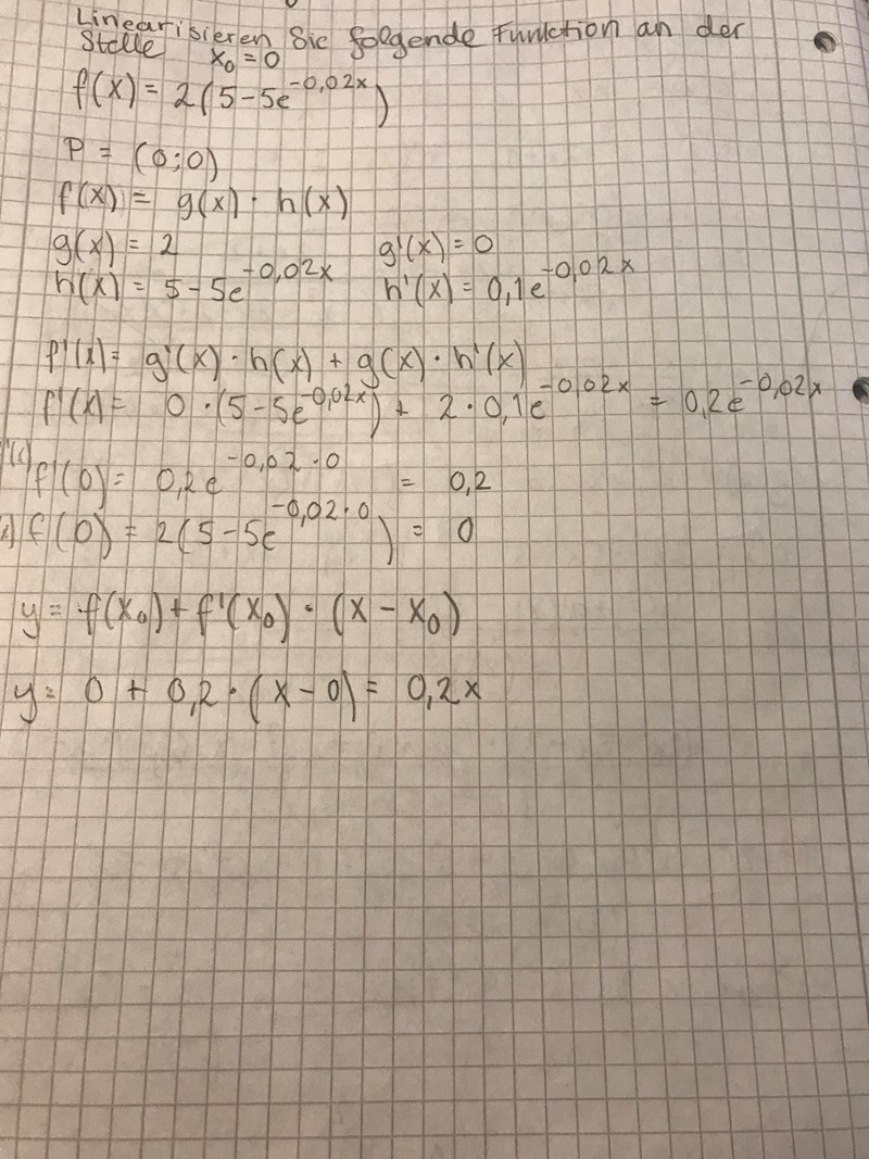 Ska alltså linjärisera denna funktion i punkten (0;0). Jag har inget facit att rätta mig efter så undar bara om det ser rätt ut?