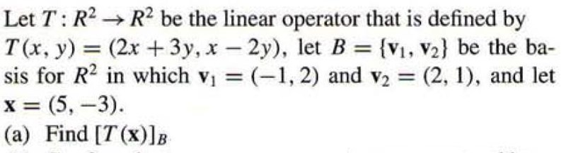 Jag läser uppgiften som "skriv T(x) på matrisform i basen B". Min lösning:
