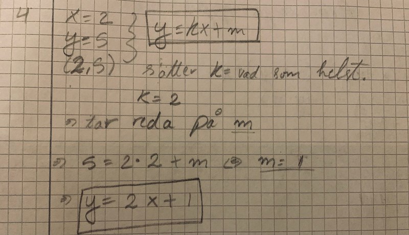 Hej. Har jag gjort rätt här? Känns som om när det gäller ekvationssystem så behöver jag jag två stycken ekvationer…