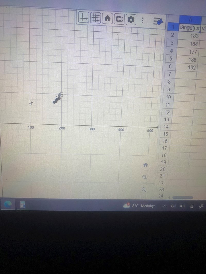 Försök sedan att rita en rät linje som matchar desa punkter så bra det går.