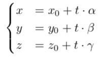 I är normalformen Ax+By+Cz+D=0 ett plan, ej en linje. Dvs linjer i planet och plan i rummet kan skrivas på normalform, men för linjer i rummet är det parameterform som gäller. Dock, det finns en lite mer ovanlig form för rymdlinjer: den parameterfria. Vi löser ut parametern t: I ditt exempel kan skrivas