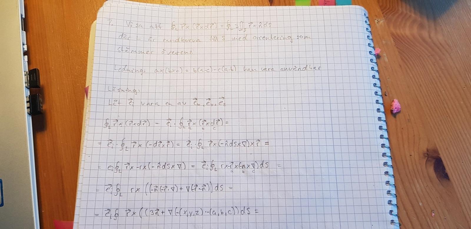 Jag är inte helt med på hur du räknar ut summan efter omskrivningen till Stokes. Jag antar att du roterar vektorerna och sen använder bac-cab? Påverkas inte värdet på vektorerna vid omskrivning?