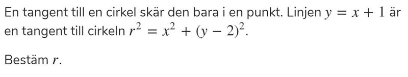 Linjen y=x+1 är en tangent till cirkeln r^2 = x^2 + (y−2)^2. Bestäm r
