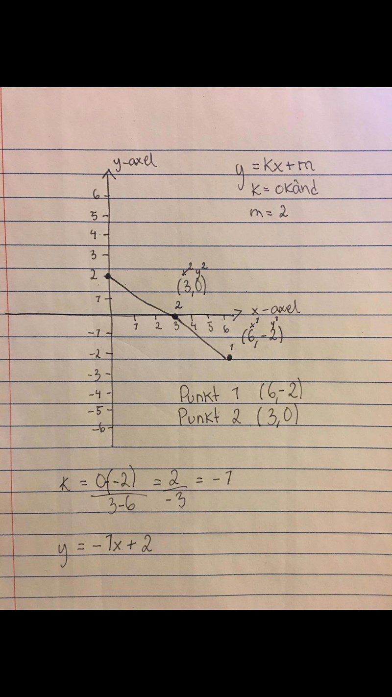 Jag tolkade att det skulle bli en ekvation som är delvis färdig (att +2) är m utifrån formeln y = kx + m men nu blev jag verkligen förvirrad.
