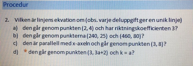 Dr. G skrev :Om det är all given information kommer linjens ekvation att innehålla a.