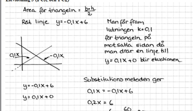 Maryam 2006 skrev:Hej det här är frågan och under ser man svaret. Jag förstår inte riktigt varför den andra linjens lutning är 0,1x
