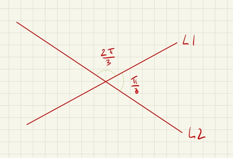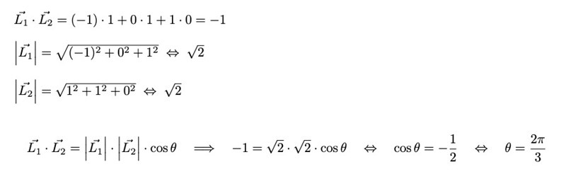 Okej, kan man därmed räkna ut vinkeln mellan L1 och L2 med dessa koordinater och skalärprodukt?