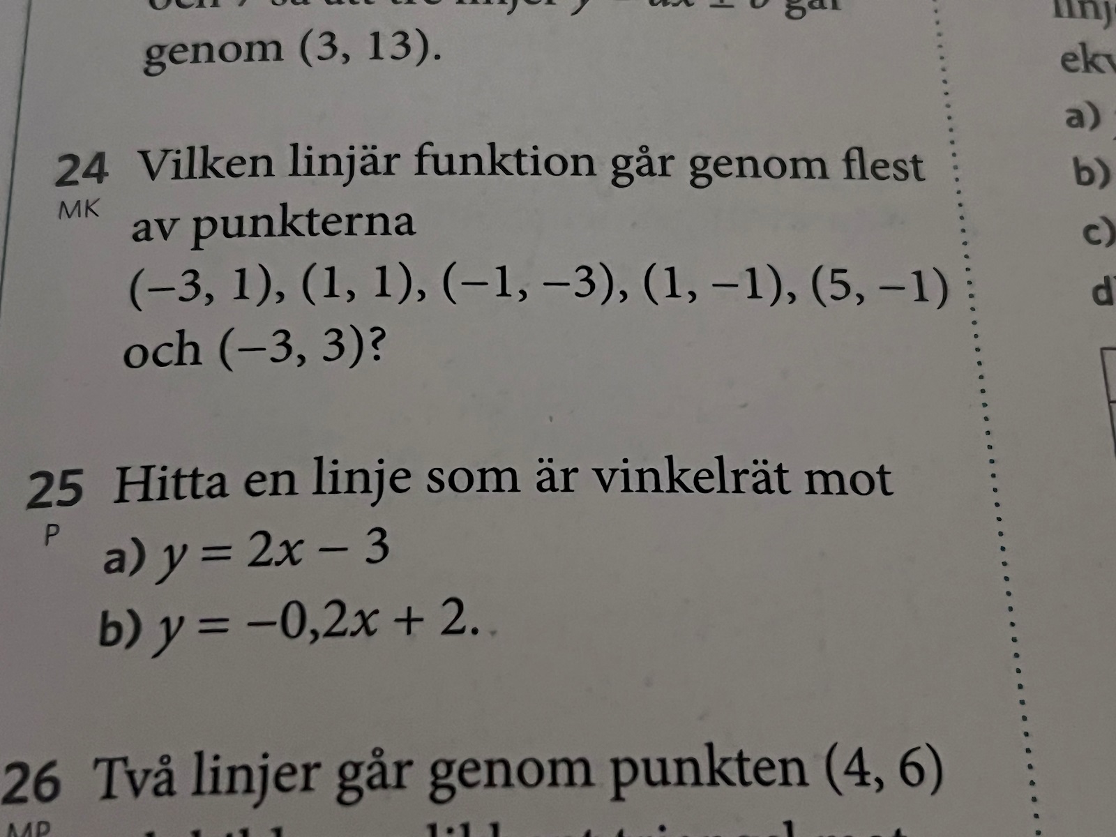 Du känner till k-värdet för den ena linjen i a-uppgiften.