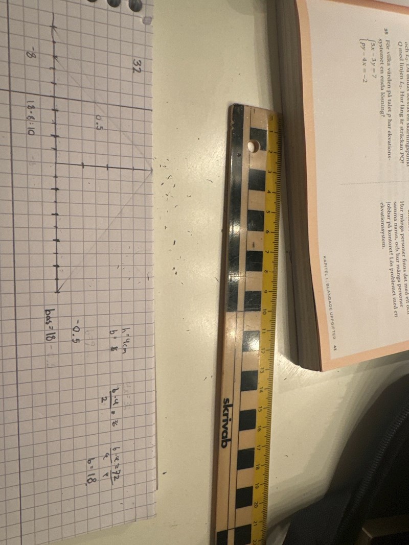 Vi vill att detta avstånd ska vara lika med 18 eftersom b*h/2 = 36 och h = 4.