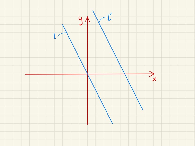 Räkna ut två punkter på din linje. Rita in dem i diagrammet. Dra en linje genom punkterna. Blir det linjen l’?