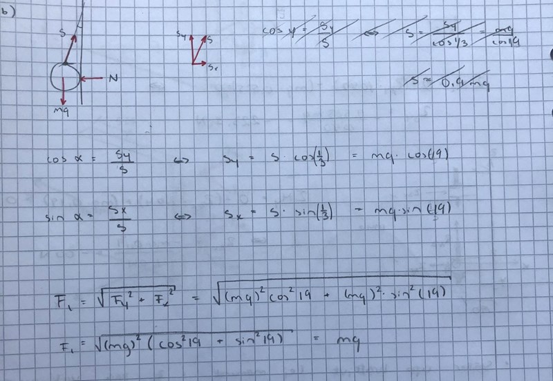 Spänningen måste ju vara större än mg. Annars kan det inte bli jämvikt.