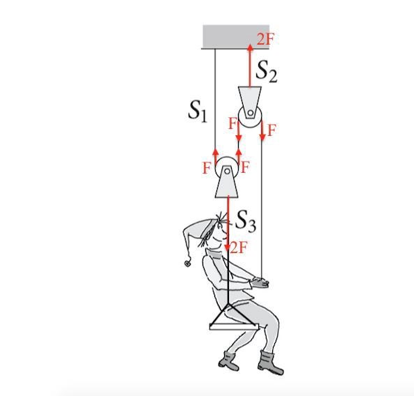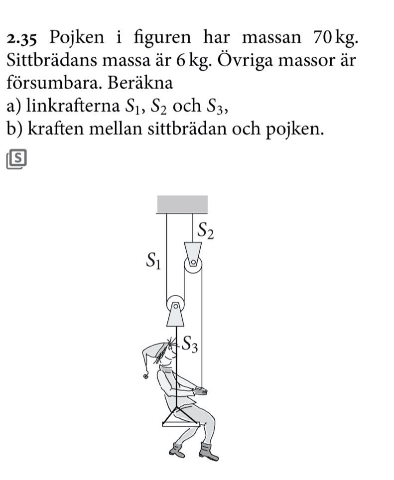 Vi får väl anta att systemet är i vila - det borde ha stått i uppgiften annars. Då är alla nettokrafter 0. Kan du rita ut de krafter som finns i systemet?