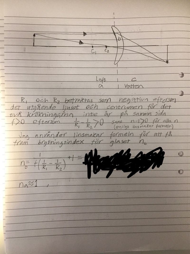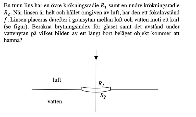 Stämmer min lösning? Jag har ingenstans att kontrollera svaret och jag har inte gjort någon liknande uppgift. Jag kan inte svära på mitt påstående "Rent allmänt gäller för alla linser:", men det borde gälla, eller har jag missat något?