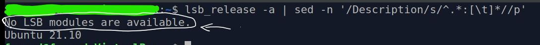 Den första raden ska på något vis tas bort. Jag tror att det behövs att klämma in ett grepp-kommando mellan första och andra kommandon, som endast plockar raden innehållande "Description", eller fånga upp det första felmeddelandet genom att skriva lsb_release -a 2>/dev/null