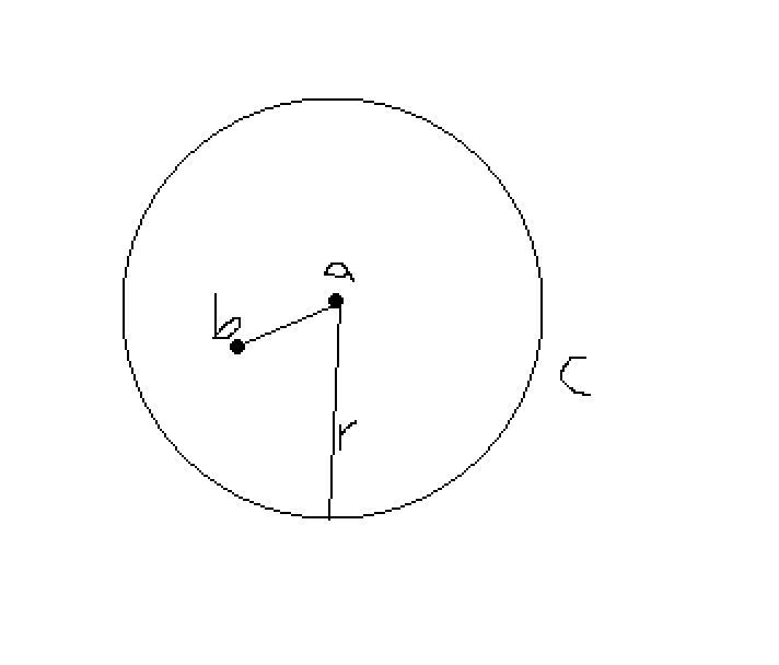 PATENTERAMERA skrev:Titta i din figur. Vilket är det minsta avståndet mellan b och cirkeln? Dra en radie i cirkeln som går genom b. Tänk på att abs(b - a) inte är någonting annat än avståndet mellan a och b.