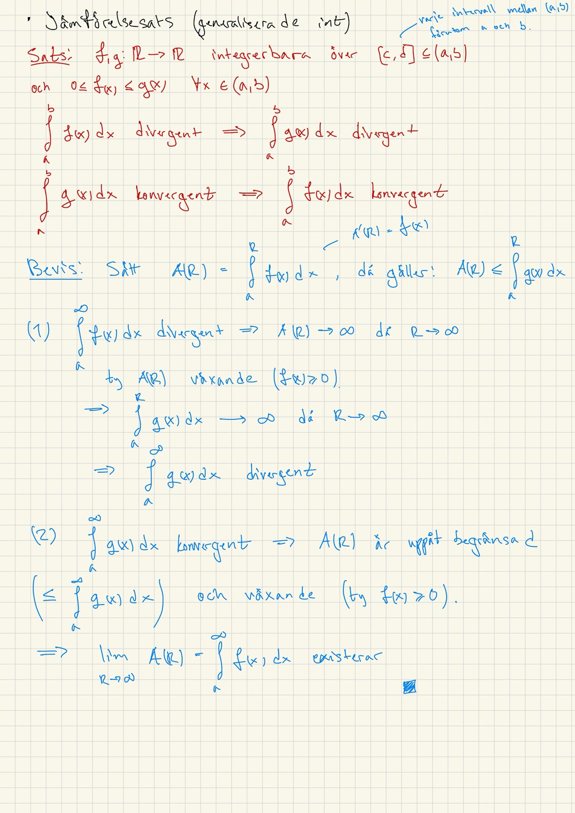 Detta är vårt bevis för jämförelsesatsen för generaliserade integraler:
