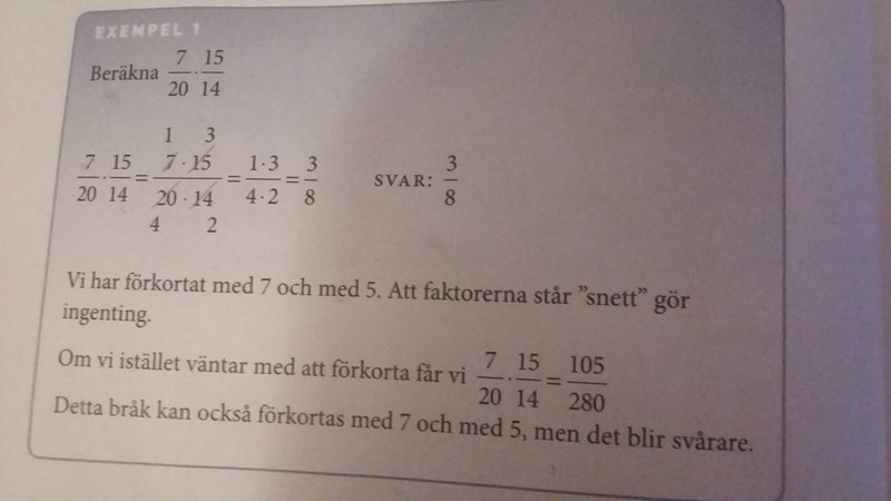 Edit: Jag tror jag kom precis på svaret själv är det så att man kan byta ordningen på nämnaren så istället för 20/7 kan man förkorta med 20/5 eftersom man förkortar täljaren 15 med 5 eller är jag ute och cyklar?