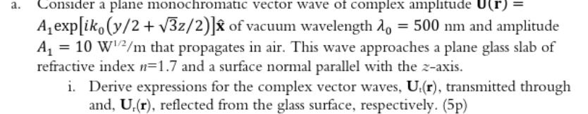 Hur ska jag tolka detta? Jag tänker att vågen färdas i x-riktning ty x-hat och därför kommer vi bara att kolla på den sagitalla delen av det elektriska fältet för vågen vid gränsskiktet. Däremot undrar jag isåfall hur y/2 + sqrt(3)/2z påverkar bilden. Är det fasen helt enkelt?