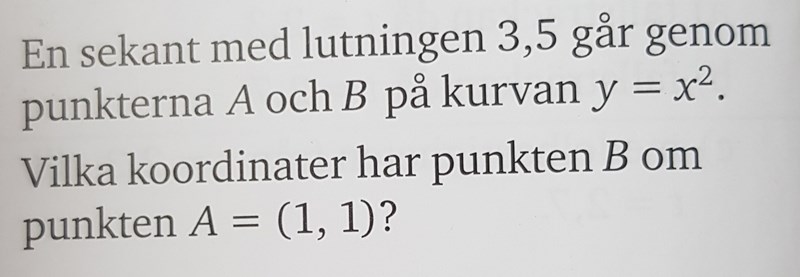 Lutningen på sekanten är 3,5. Kan du uttrycka den som ett samband mellan B och A?