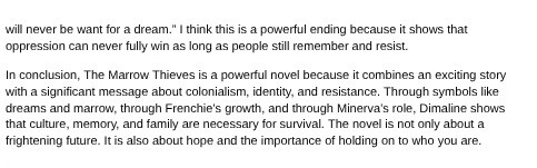 Det är en bok analys. Tack för feedbacken jag ska byta ut important mot noteworthy eller significant.