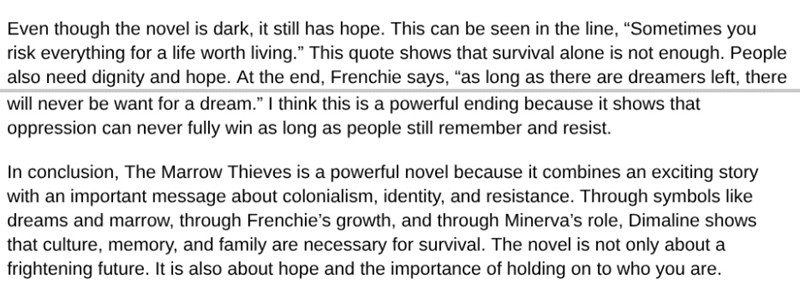 Det är en bok analys. Tack för feedbacken jag ska byta ut important mot noteworthy eller significant.