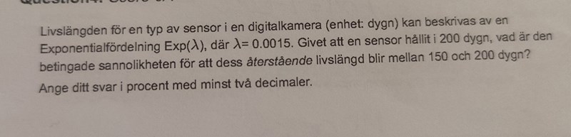 Om uppgiften hade frågat efter sannolikheten att den håller minst 150 dygn till hade jag beräknat: