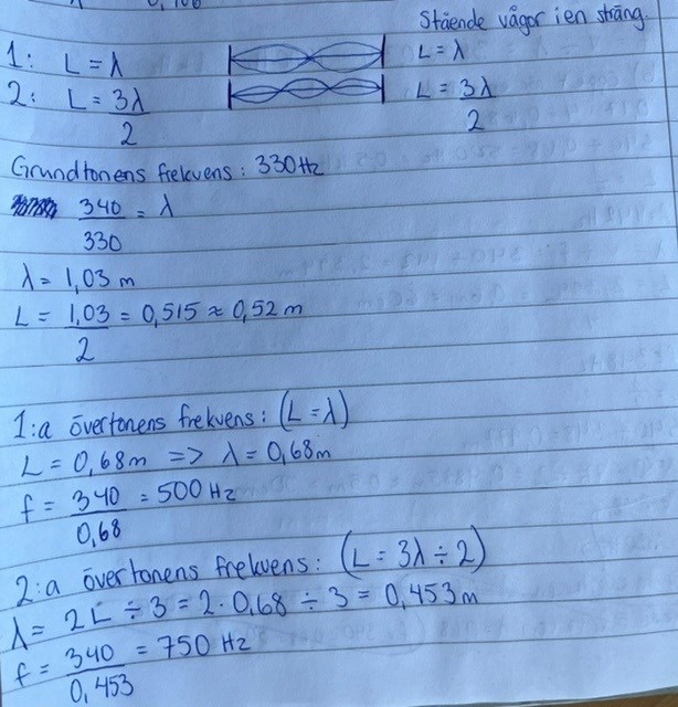Andra övertonen gör jag samma sak bara att lambda i detta fall är: 5lambda/4 eftersom det är andra övertonen.