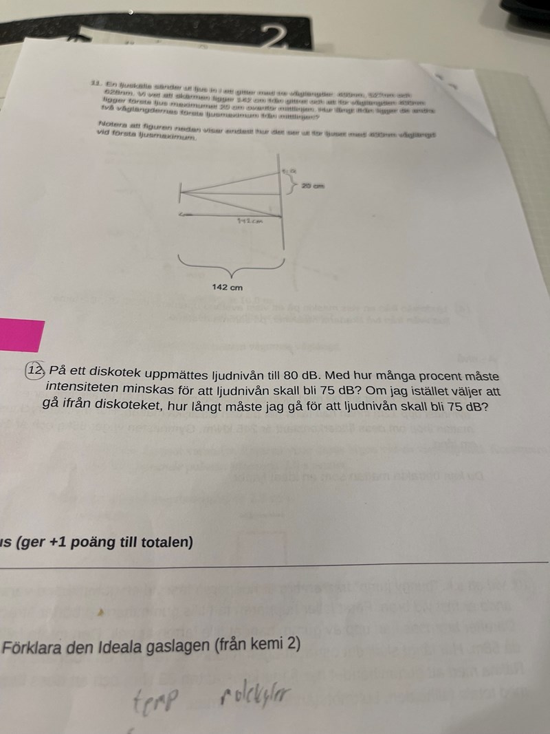 Jag fattar hur jag ska räkna ut hur intensiteten minskar från 80dB -> 75 dB. Men sen vet jag inte hur lång man måste gå för att ljudnivån skall bli 75dB.