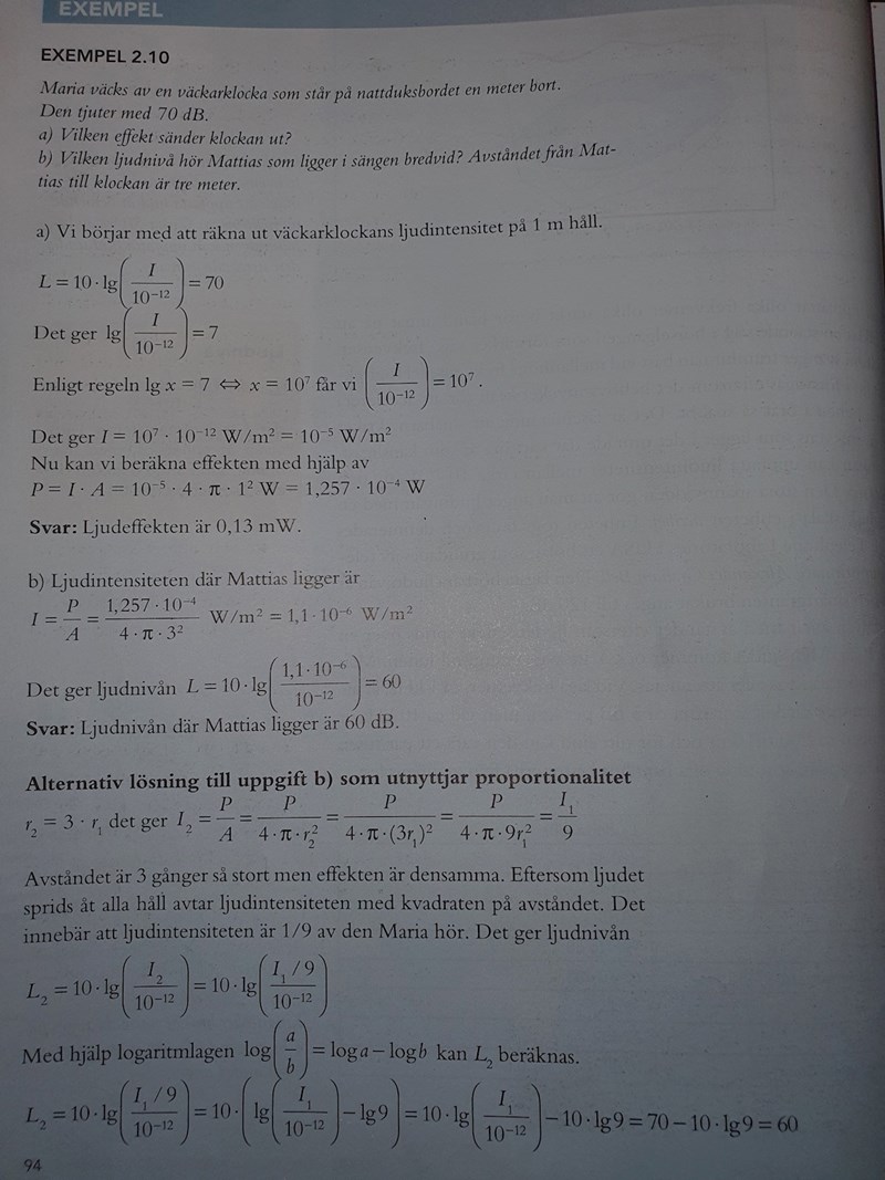 Ljudnivå uppgift - förstår inte facit