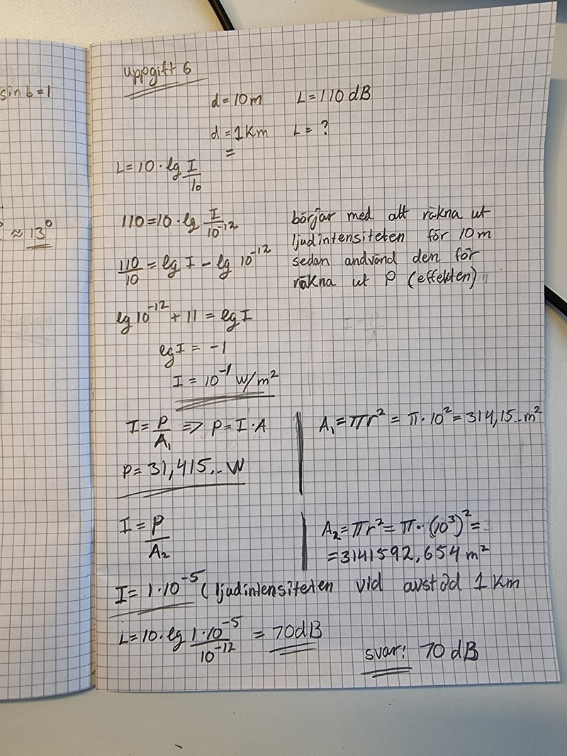 Vid mätning av ljudnivån 10 m från en jumbojet fick man värdet 110 dB.