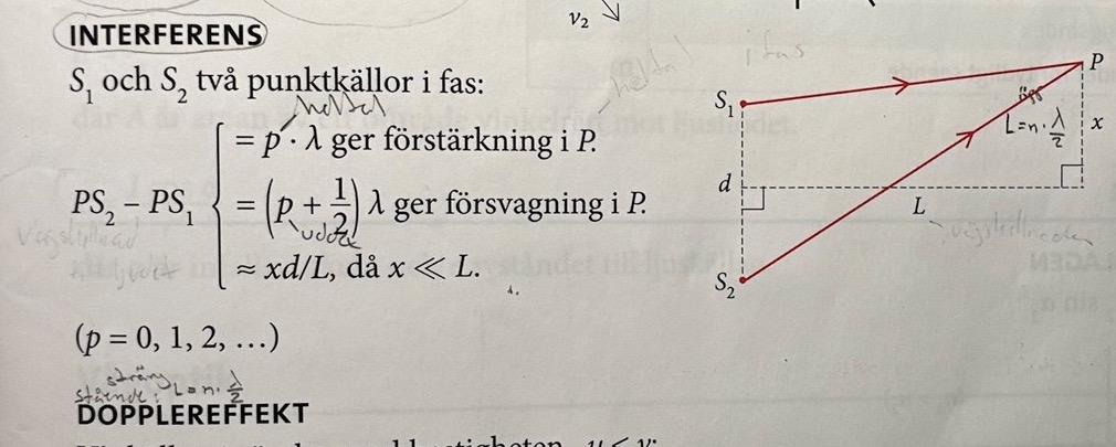 S-positionerna är maximum (stark ton) därav konstruktiv interferens, där Δs = n •λ.
