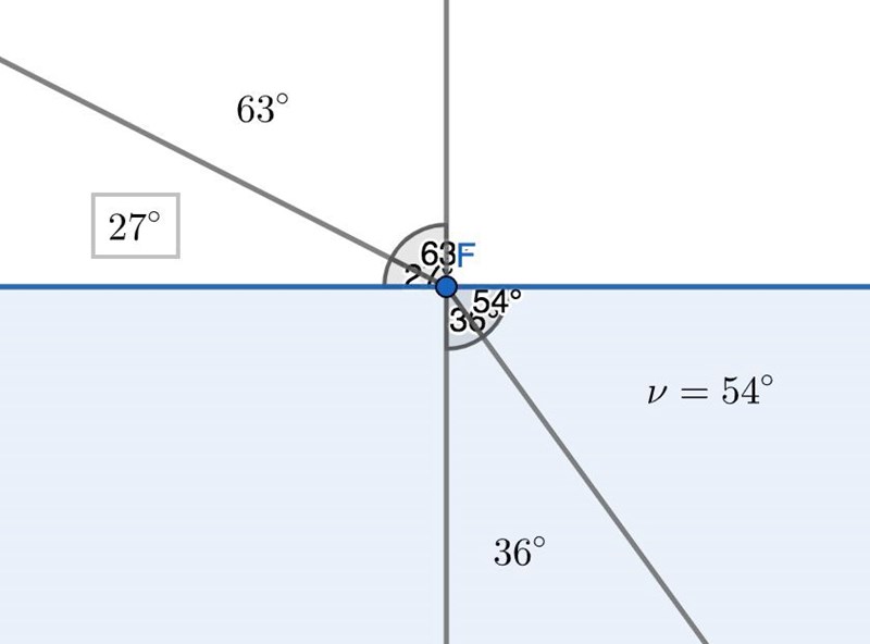 n1cos27°=n2cosνn_1 \cos 27^\circ = n_2 \cos \nu