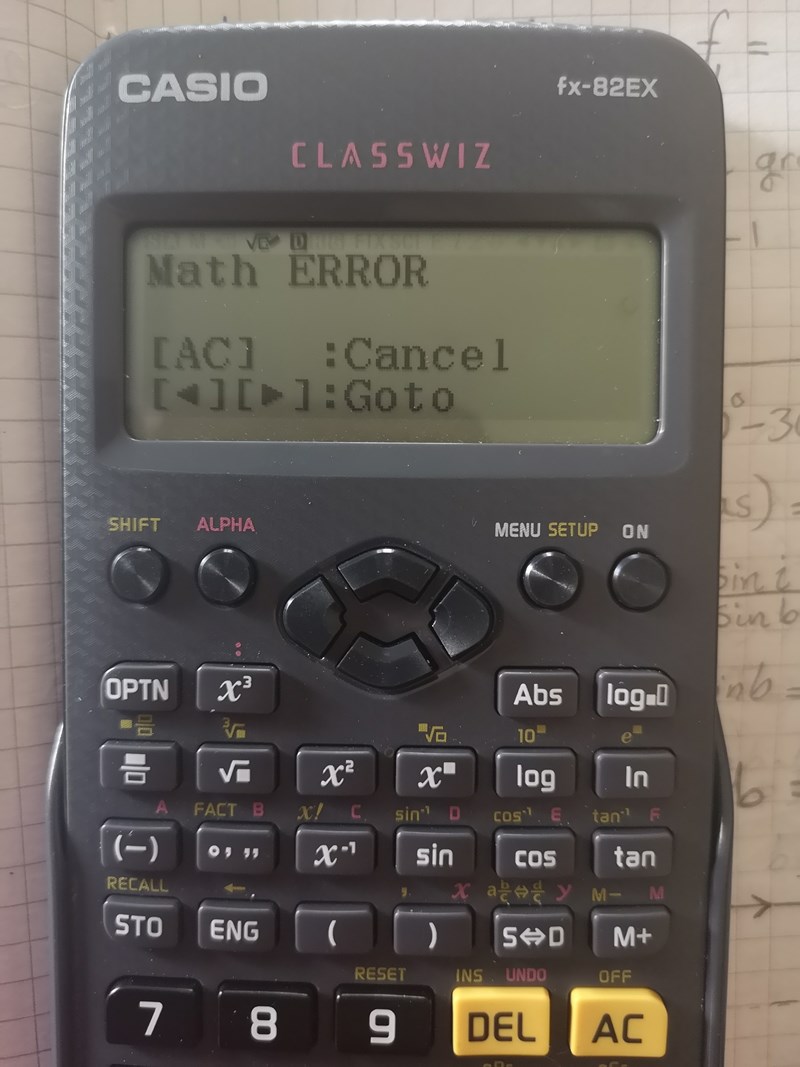 Jag fattar inte varför vid sista steg när jag tar arc sin för 40 så står det math error i miniräknaren