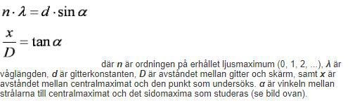 Sedan räkna fram α3(tredje maximum) och avståndet x3