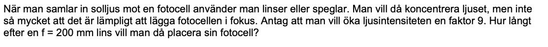 En lite märklig fråga. Linsdiametern är inte given och det står ingenting om hur stor fotocellen är heller.