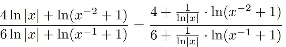 Dr. G skrev:Både täljare och nämnare har dividerats med ln|x|.