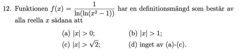eftersom ln(x) endast är definierad då x > 0, så behöver du se till att ln(x^2-1) > 0.