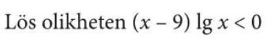 Sedan skulle jag gå vidare och konstatera att för att produkten av de två faktorerna (x - 9) och lg(x) ska vara mindre än 0 så måste en av faktorerna vara mindre än 0 och den andra vara större än 0.