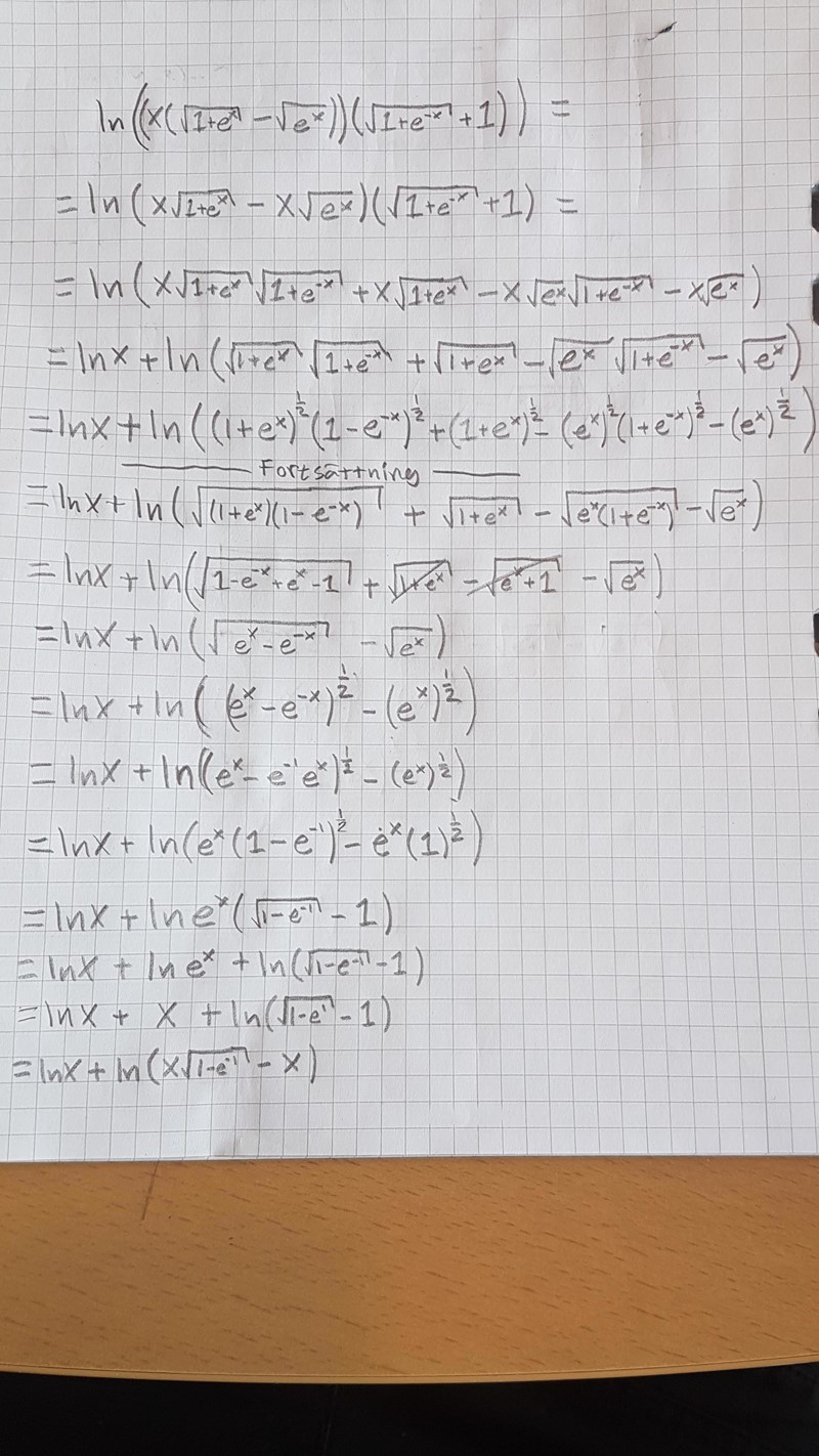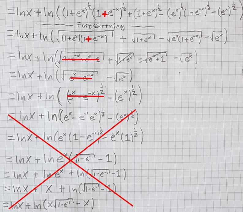 Dessutom gör du återigen fel när du bryter ut. Om du skall bryta ut e^x-e^{-x}e^x(1-e^{-2x})$$. Det blir även krångligare på grund av roten.