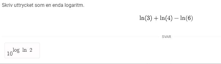 De vill att du inte skall blanda in 10 och log . Svaret ln(2) duger utmärkt.