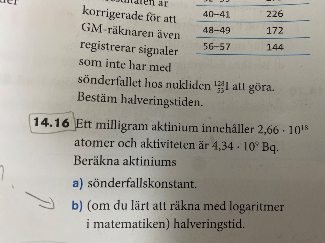 Mängden aktinium minskar alltså med 4,34*109 atomer per sekund.