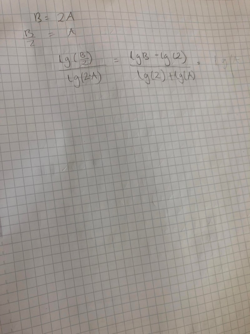 Du ska visa nånting om lg(A/B) så börja med att räkna ut A/B.