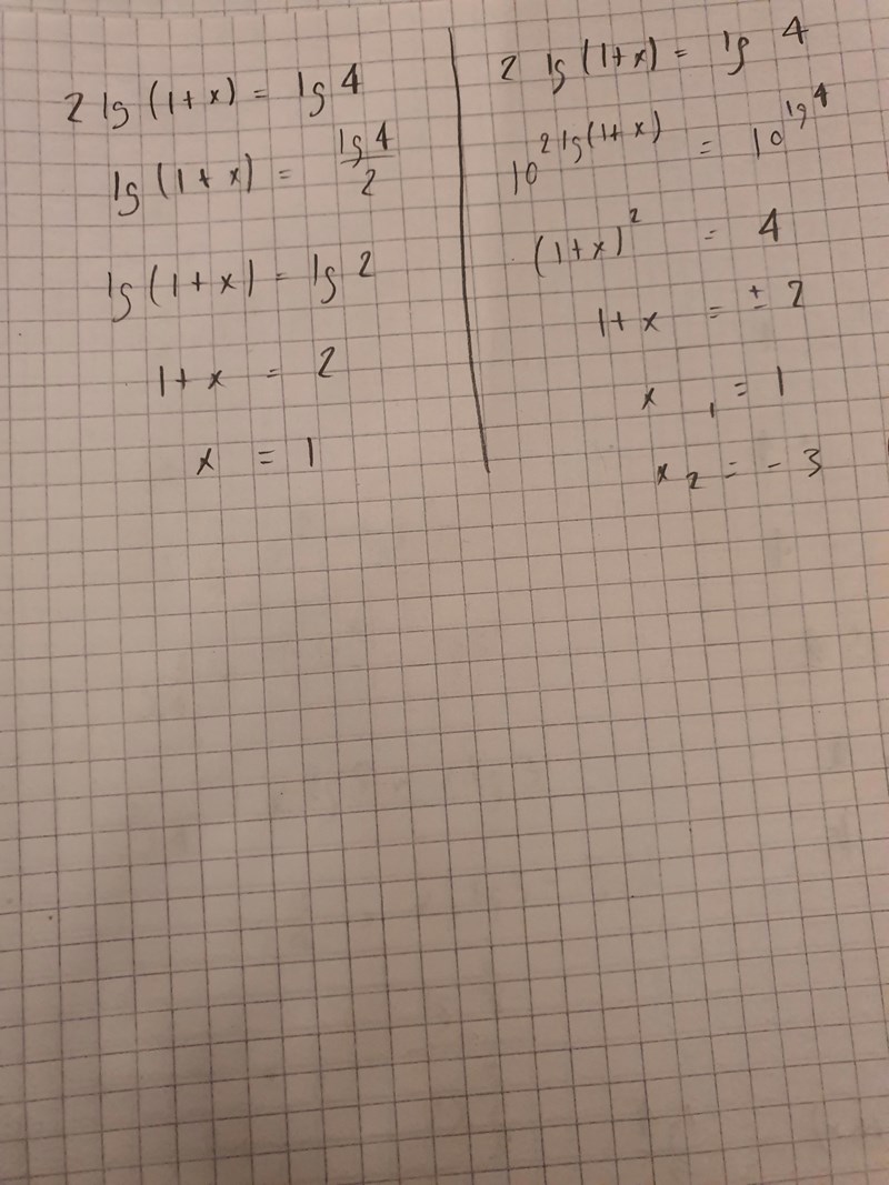 Kan inte den till vänster vara rätt? Det var kanske lite otydligt: (lg 4)/2 = 1/2 lg 4 = lg 4^(1/2) = lg 2