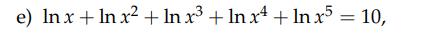 du har 1*ln(x) +2ln(x) +3ln(x) +4ln(x) +5ln(x)  = 10