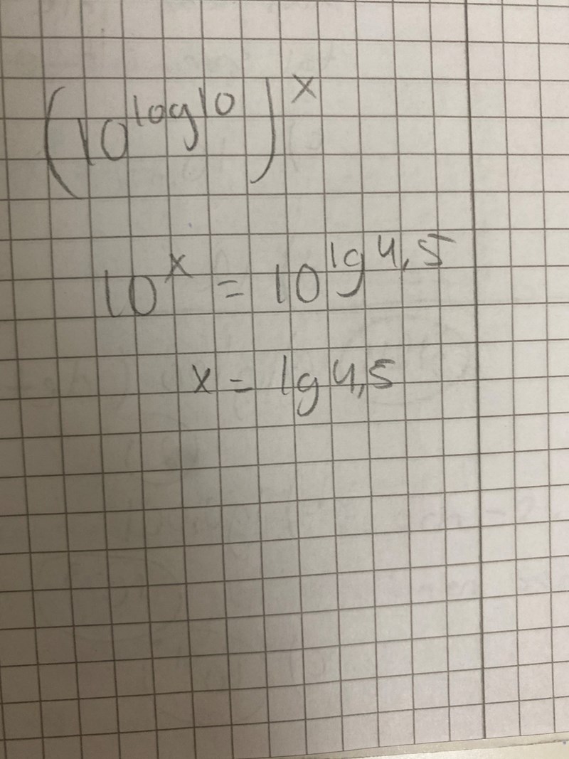 Det här har jag inte heller fattat: tar inte lg och 10 ut varandra då de är innversa operationer så att det bara borde bli x = 4,5?