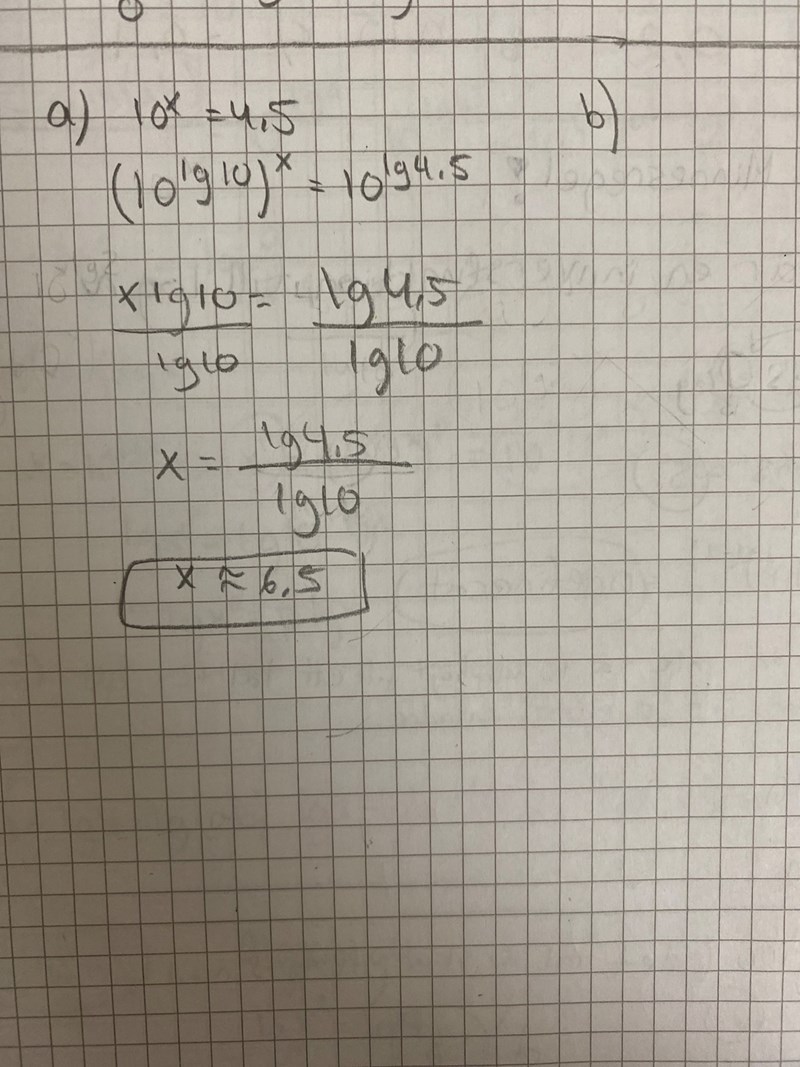 lg4,5/lg10=lg4,5/1 = lg4,5 , vilket ungefär är 0,65