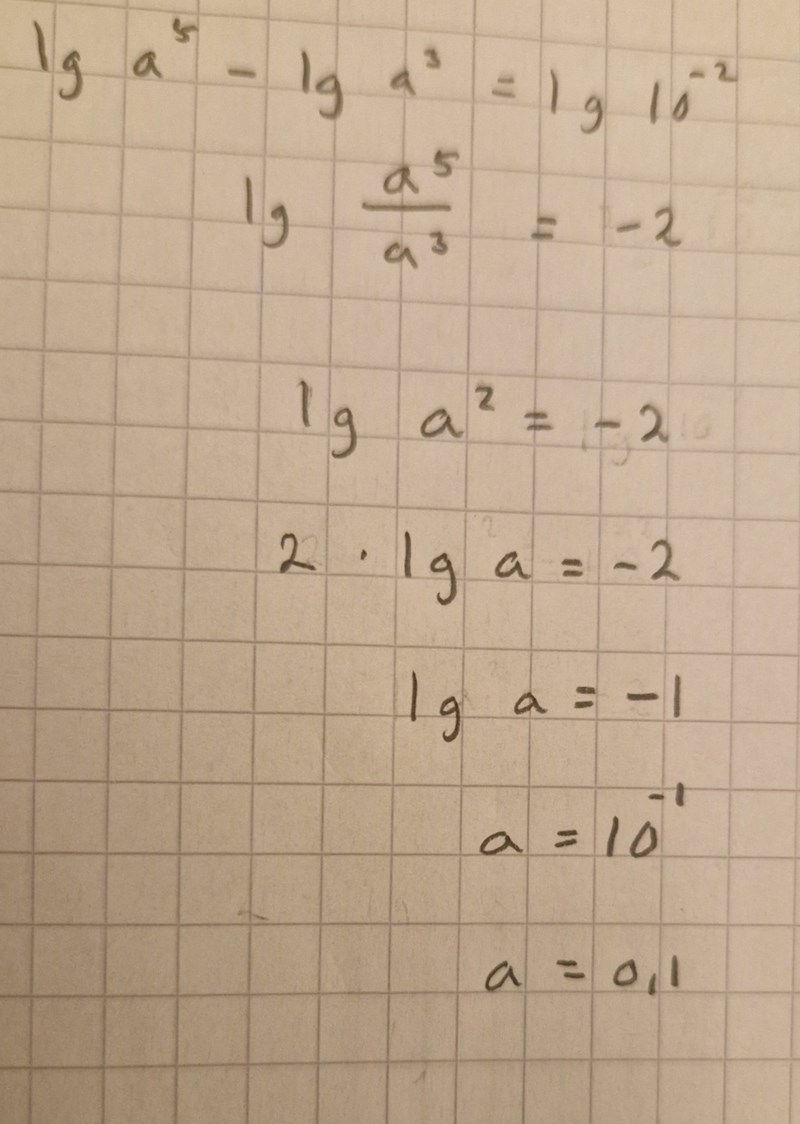 Jag håller med om att a inte är negativa 0.1 utan endast 0,1. Men det jag menar är att de på Youtube fick lösningen till både positiva och negativa 0,1 och konstaterade sedan att den negativa lösningen inte är möjlig. Men det jag menade är att när jag löste uppgiften så fick jag inte en negativ lösning som alternativ. Har jag då löst ekvationen fel?