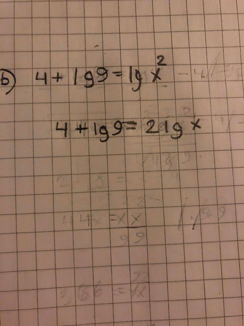 10^(4+lg9)=10^lgx^2. Def 10^lgx = x