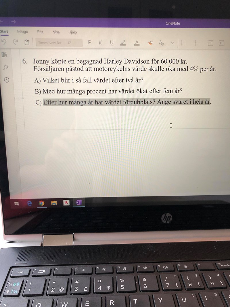 Ja du har gjort rätt hittills! Nu är det logaritm-lagar som gäller. Har du arbetat med logaritmer än? Försök kolla igenom ditt formelblad för logaritm-lagarna om du har ett, och om inte försök hitta lagarna online;