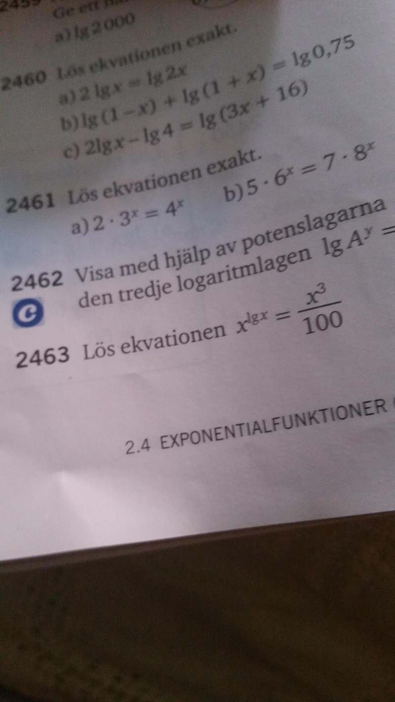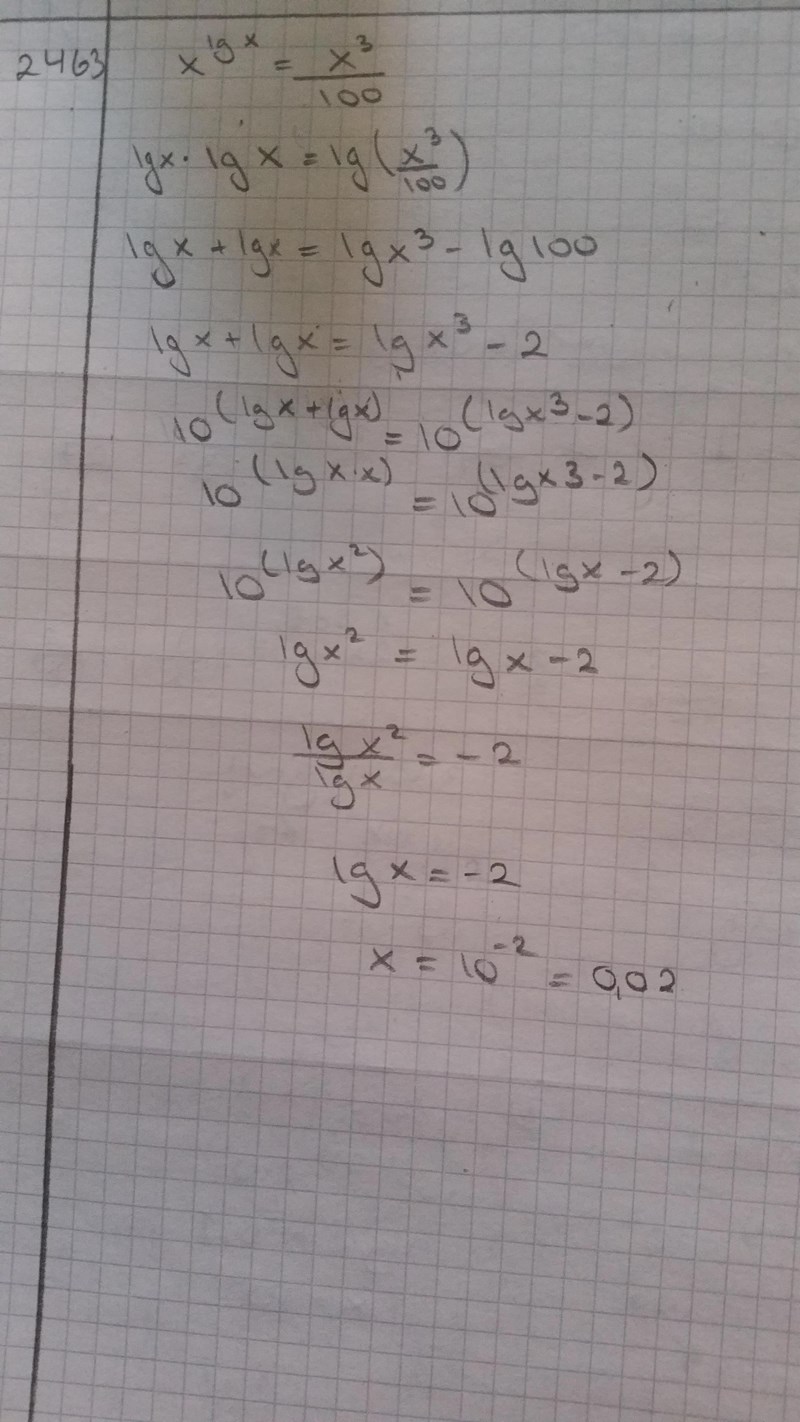 AndersW skrev :Nja, det första felet ligger redan på rad 3: lg x * lg x är inte samma sak som lg x + lg x
